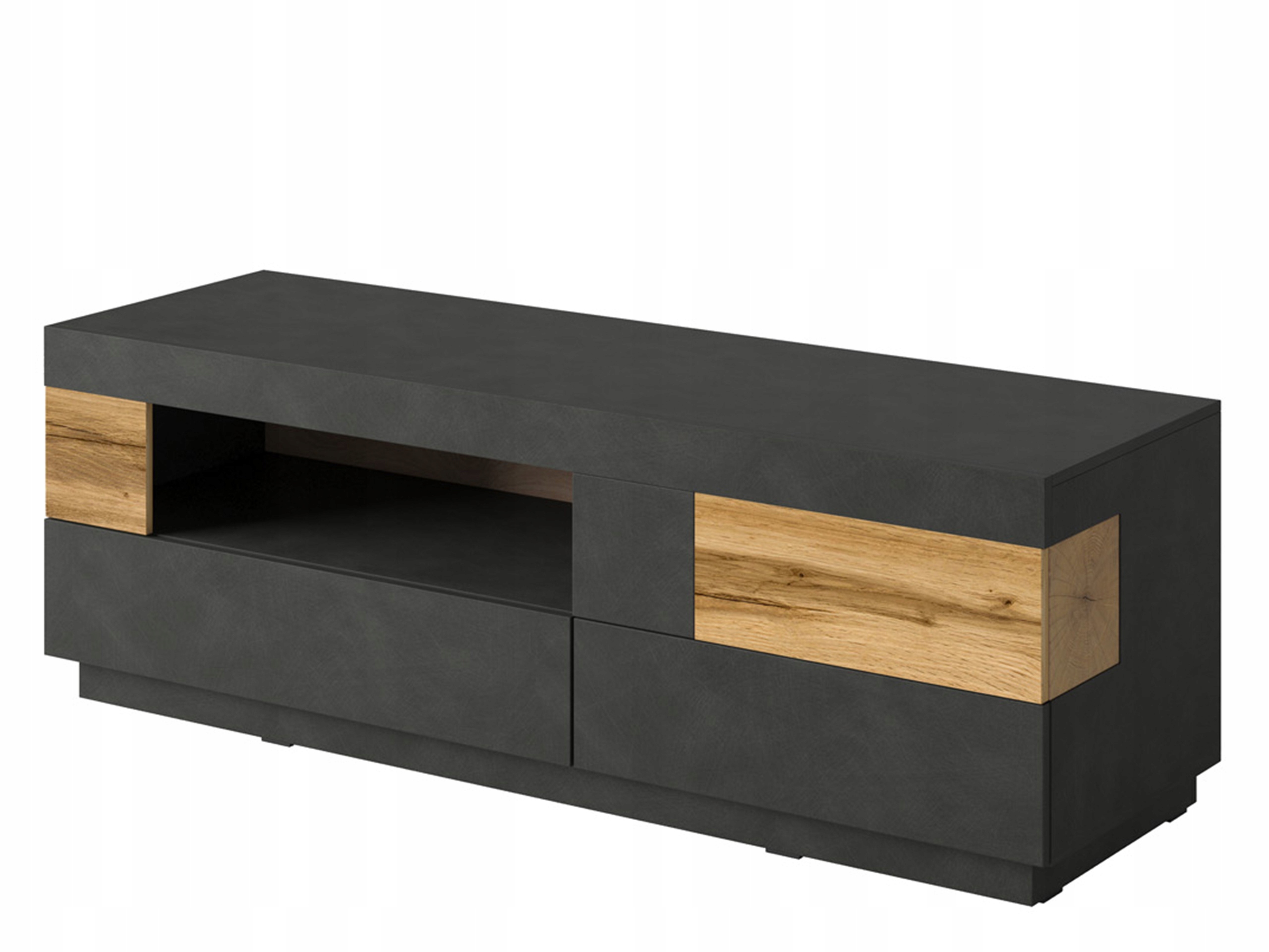 SILKE 41 stylowa szafka RTV z dwoma szufladami. Elegancki, prosty design sprawdzi się w nowoczesnych aranżacjach. Wykonana z wysokiej jakości płyty meblowej w kolorze matera – dąb wotan.