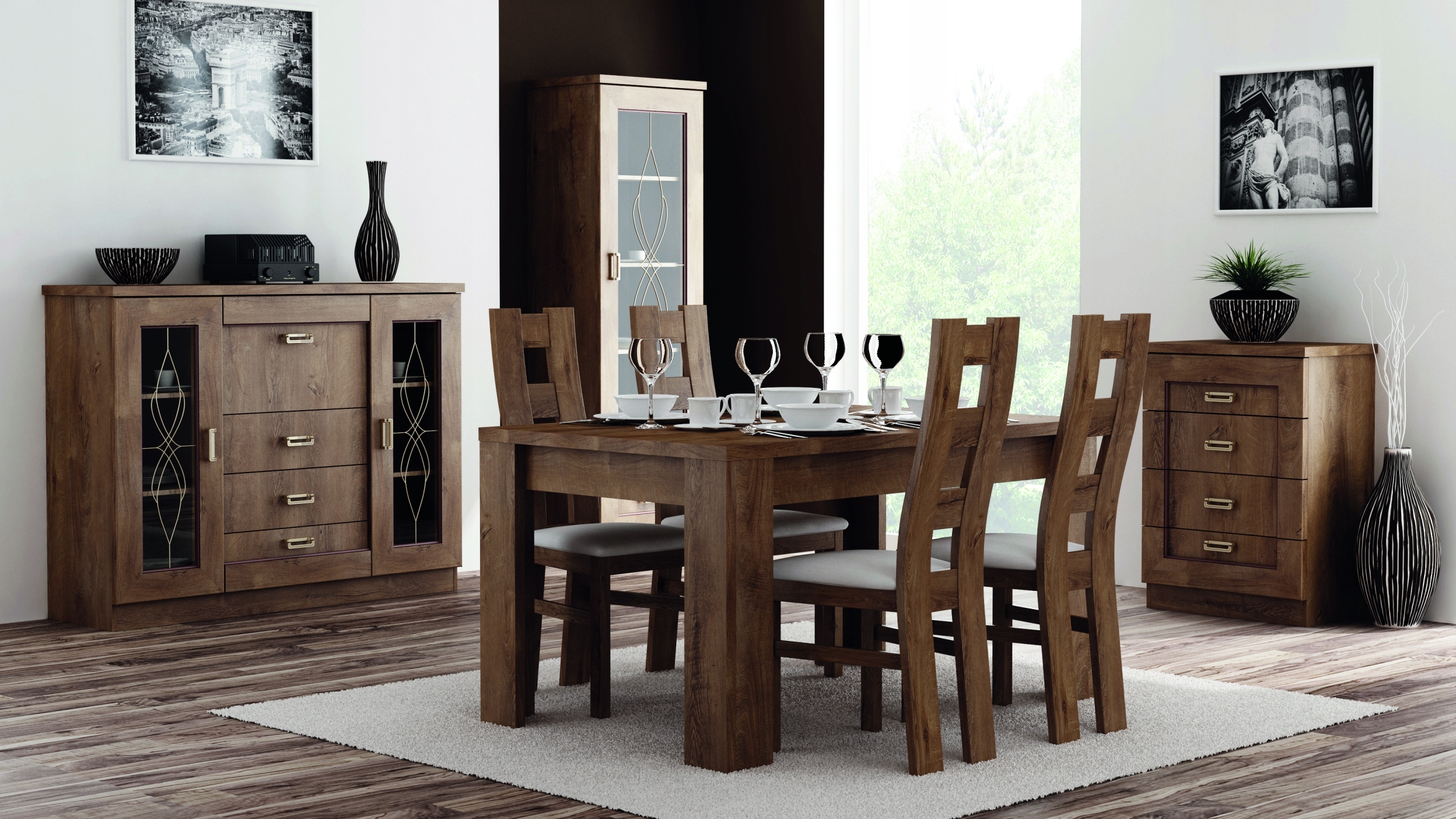system składa się z: szaf, witryn, komód, szafek rtv, szafki wiszącej, półek, luster, stołu, krzeseł, ław, szafki nocnej, łóżek