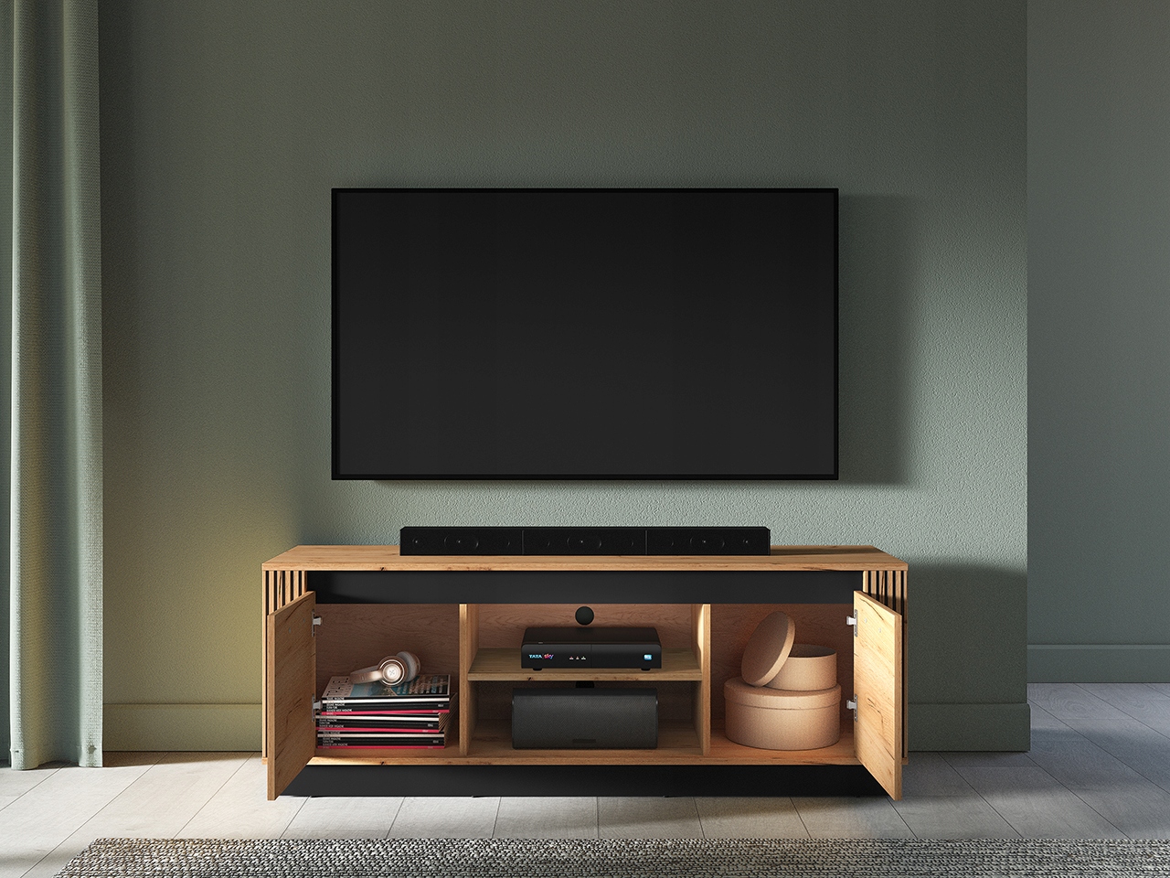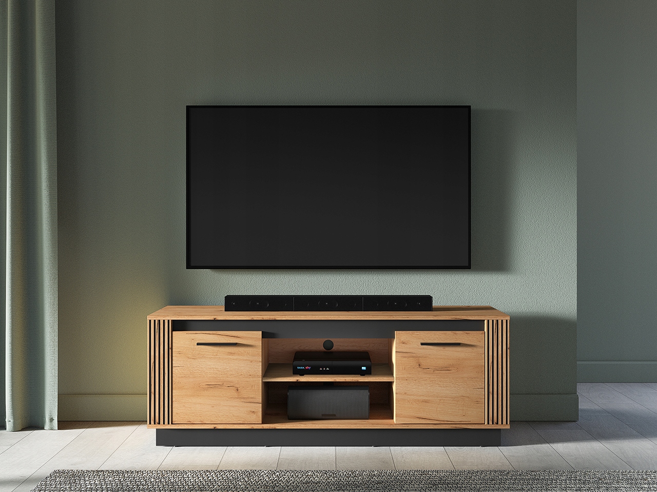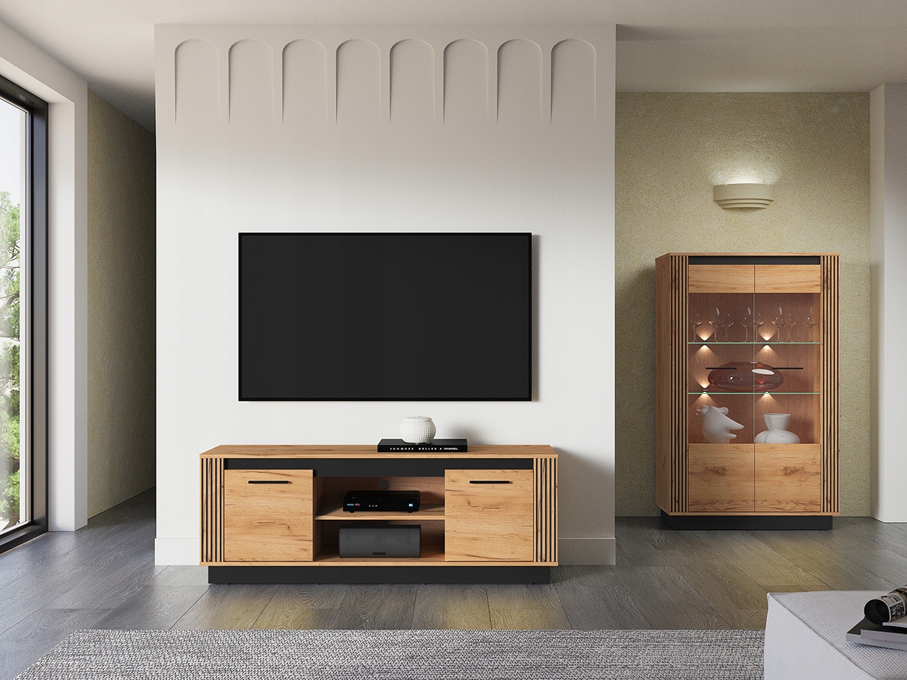 Szafka RTV URSO 08, dąb craft / czarny, MLMEBLE 150cm