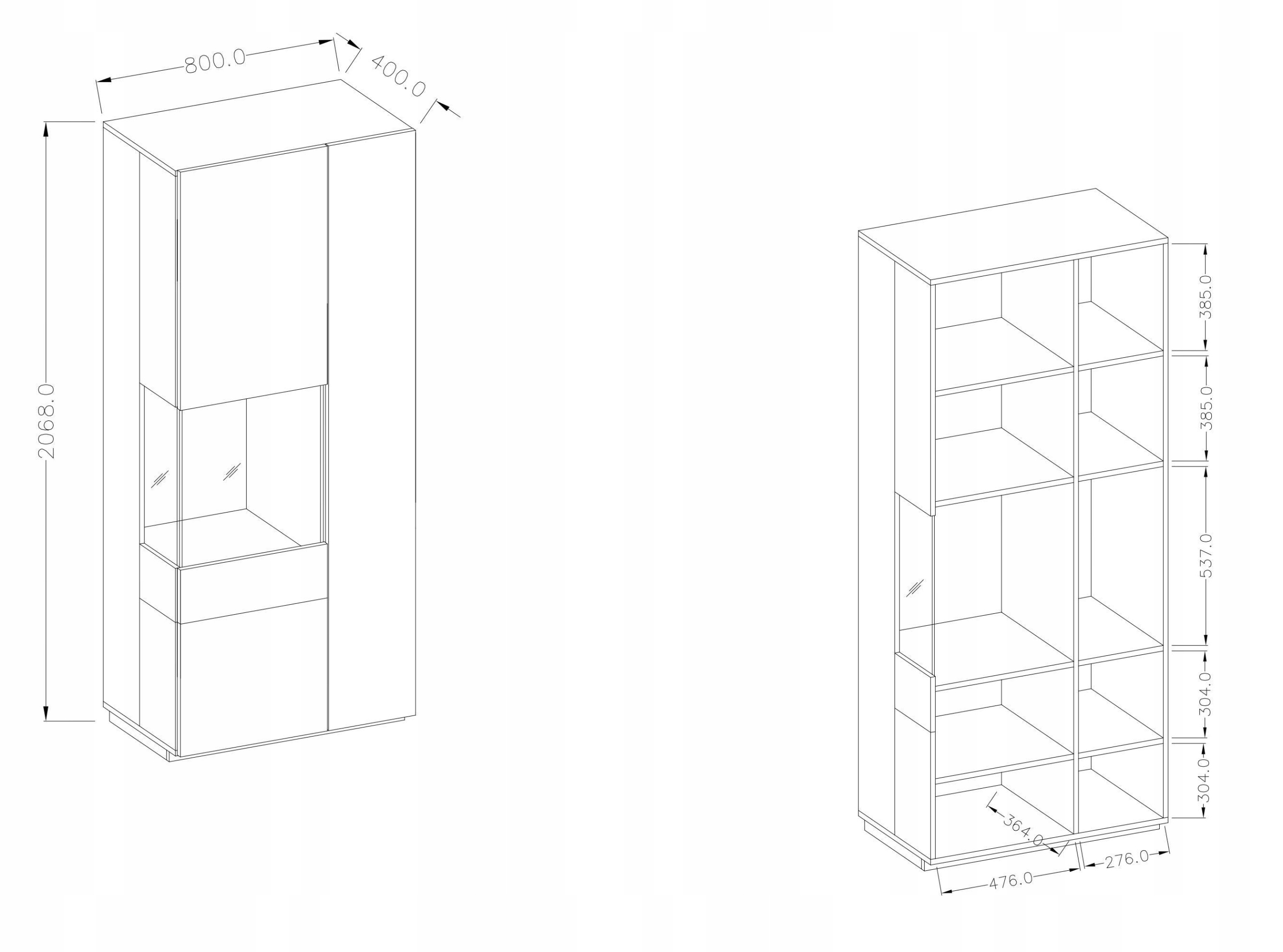Witryna biała + wotan połysk 207 x 80 x 40cm SILKE nowoczesna wysoka MODERN