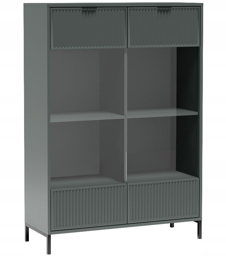 Elegancka witryna to mebel, który jest niezastąpiony w każdym wnętrzu. Do kolekcji LINKaSTYLE dokładamy piękną witrynę, w której można przechowywać naczynia, szklanki, talerze, ozdobne wazony czy pamiątki. Taki mebel dopełni wnętrze salonu lub jadalni. Witryna posiada 4-rzętowy uchwyt na kieliszki do wina i oświetlenie półki, ledowym światłem. Podświetlenie wyeksponuje rodziny zestaw obiadowy czy kryształowy wazon od prababci. Charakteru dodają ozdobne ryflowane fronty w połączeniu z szybą. Mebel stojąc na metalowych, czarnych nogach staje się lekki i funkcjonalny, z łatwością robot sprzątający pod nim przejedzie. Dostępna w trzech kolorach – cashmere/indigo/green stone.