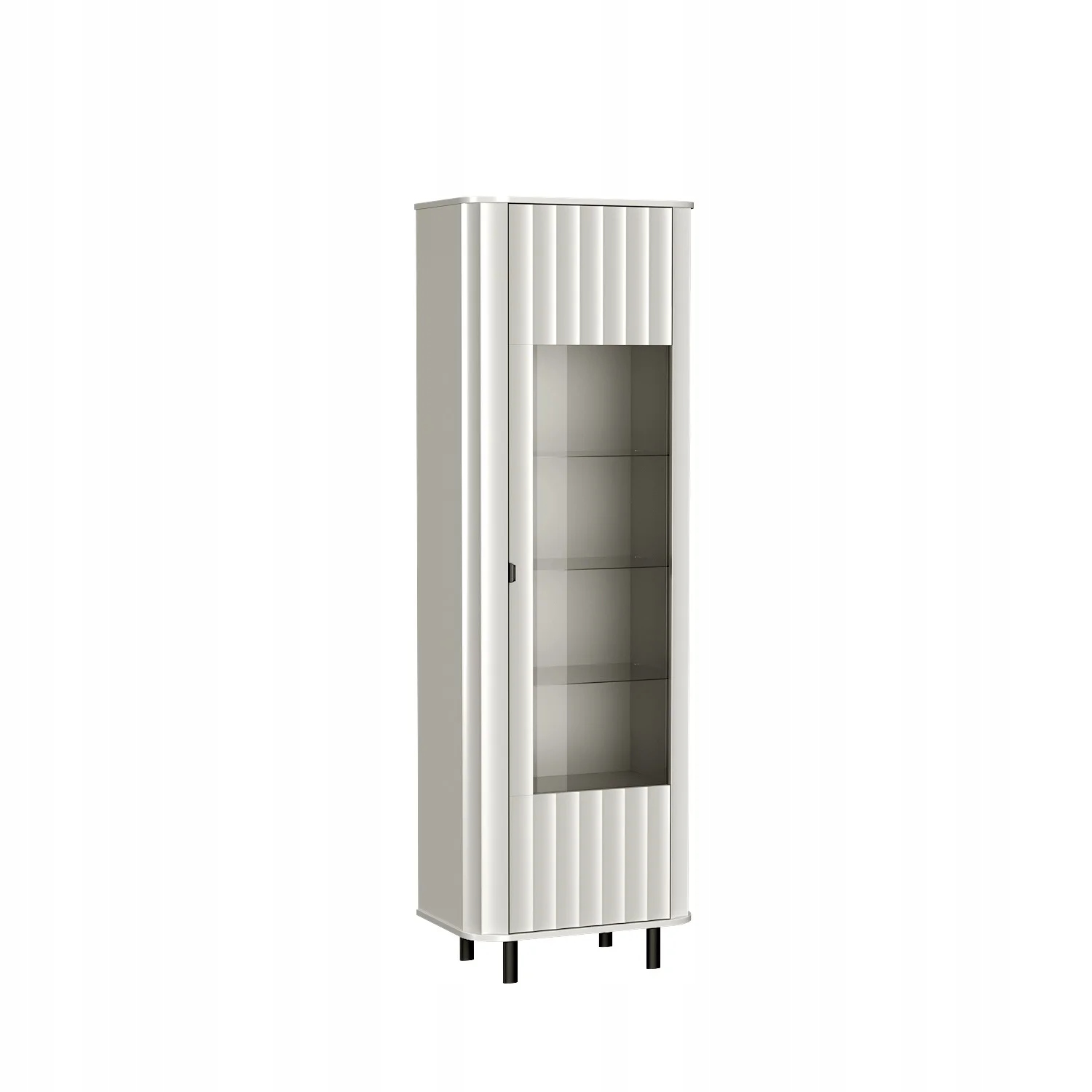 Elegancka i praktyczna witryna do nowoczesnych wnętrz NOVADO-4 to półwitryna, która łączy stylowy wygląd z funkcjonalnością. Trzy szklane półki pozwalają pięknie wyeksponować ulubione dekoracje, a zaokrąglone krawędzie i metalowe detale nadają całości lekkości i nowoczesnego charakteru. Dostępna w dwóch kolorach – clay gray i bieli.