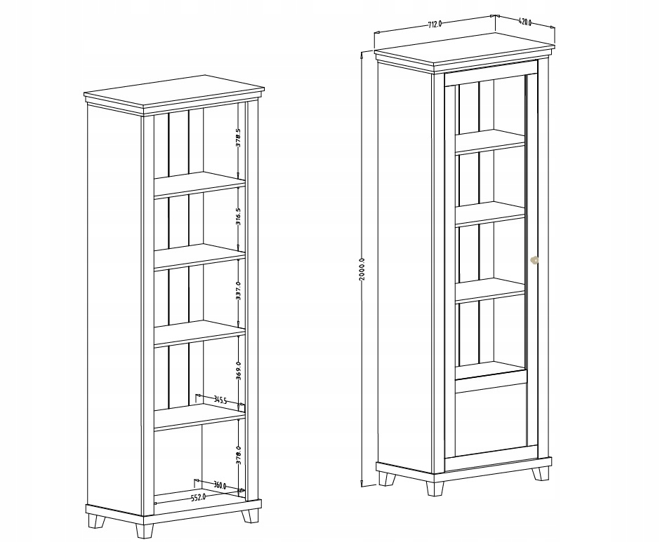 - Smukła Sylwetka: Dzięki szerokości 71 cm witryna doskonale sprawdzi się nawet w mniejszych salonach, wykorzystując wysokość pomieszczenia i oferując mnóstwo miejsca do przechowywania.