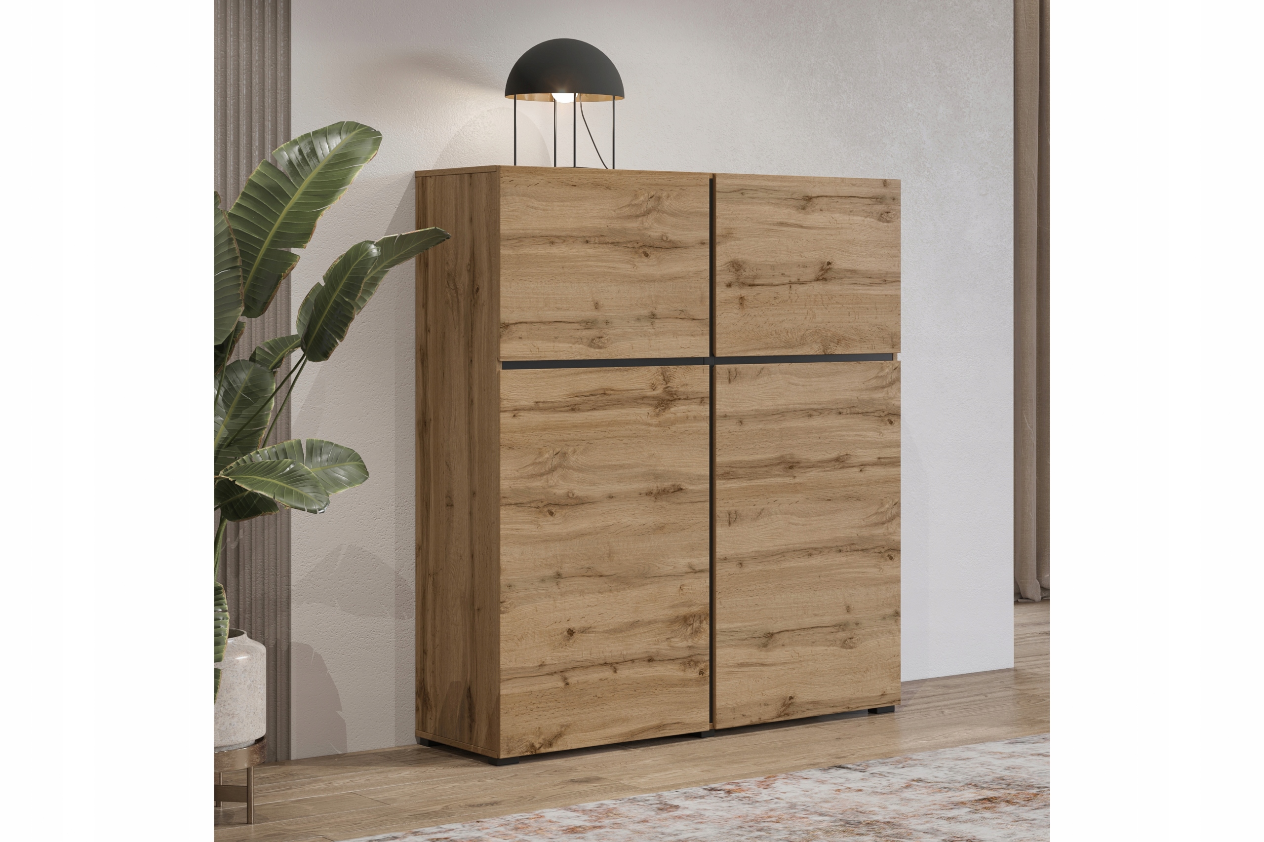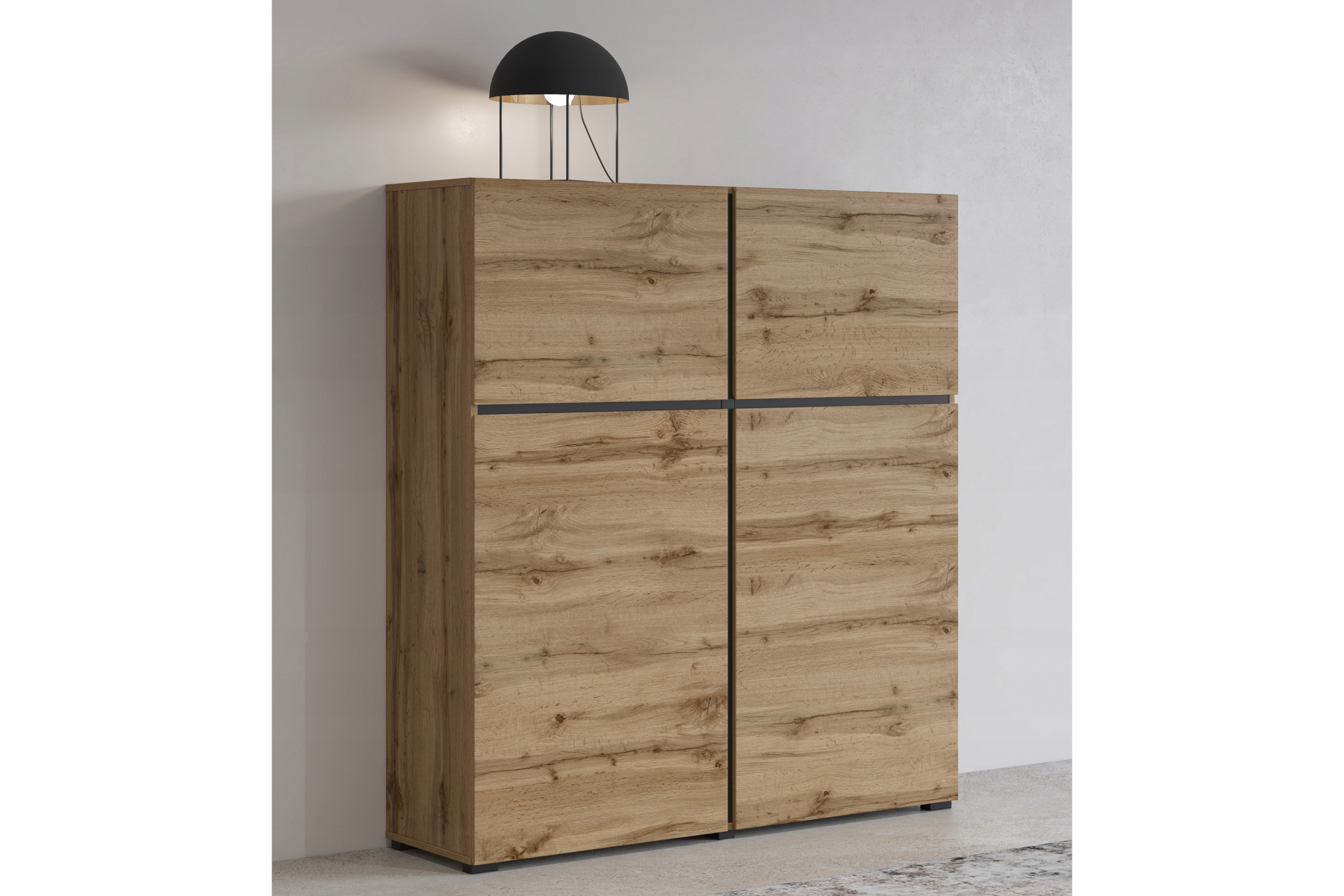 4 drzwi i 4 półki gwarantują mnóstwo miejsca na przechowywanie.