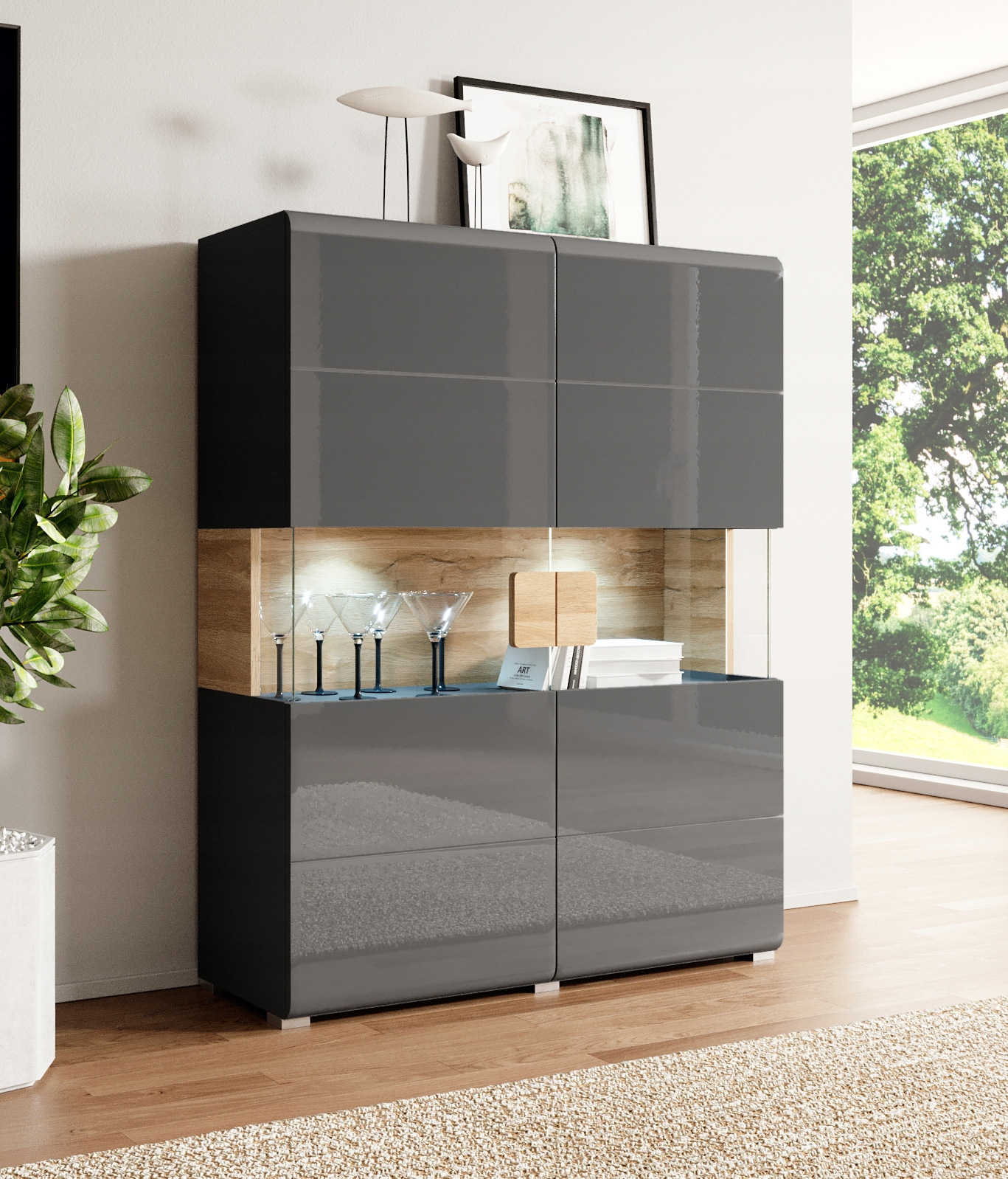 Wysoka komoda Toledo 42 Antracyt połysk – Dąb Grandson