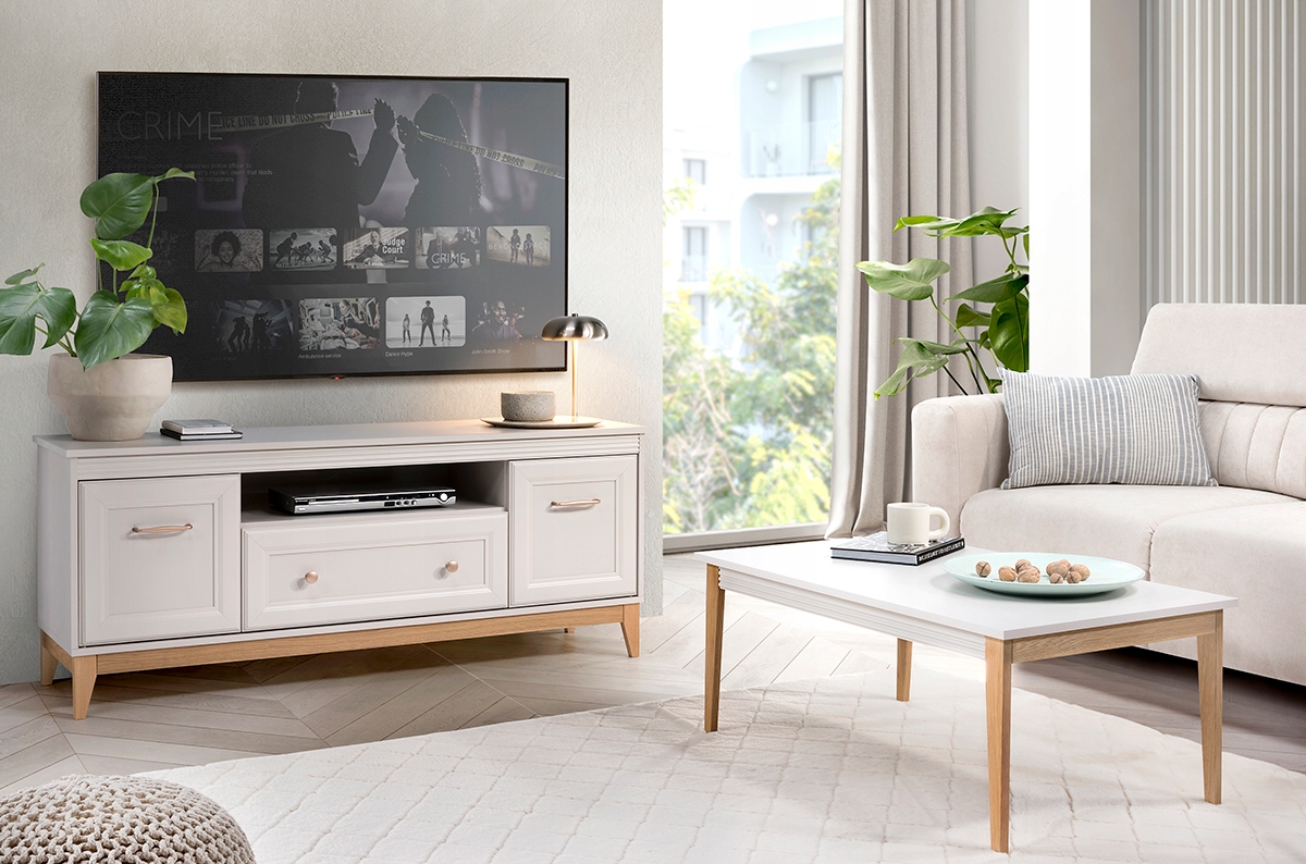 Kolekcja WINDSOR to hołd dla ponadczasowej elegancji. Inspirowana klasycznym rzemiosłem, a jednocześnie dostosowana do nowoczesnych wnętrz, łączy w sobie ciepło naturalnego drewna z subtelnym odcieniem kaszmiru. To meble, które tworzą dom pełen harmonii – miejsce, w którym każdy przedmiot ma swoją historię. Zamknij szufladę i poczuj satysfakcję z cichego domyku. Otwórz witrynę i wyeksponuj to, co dla Ciebie najważniejsze. Twój dom, Twoje wspomnienia, Twój WINDSOR.
