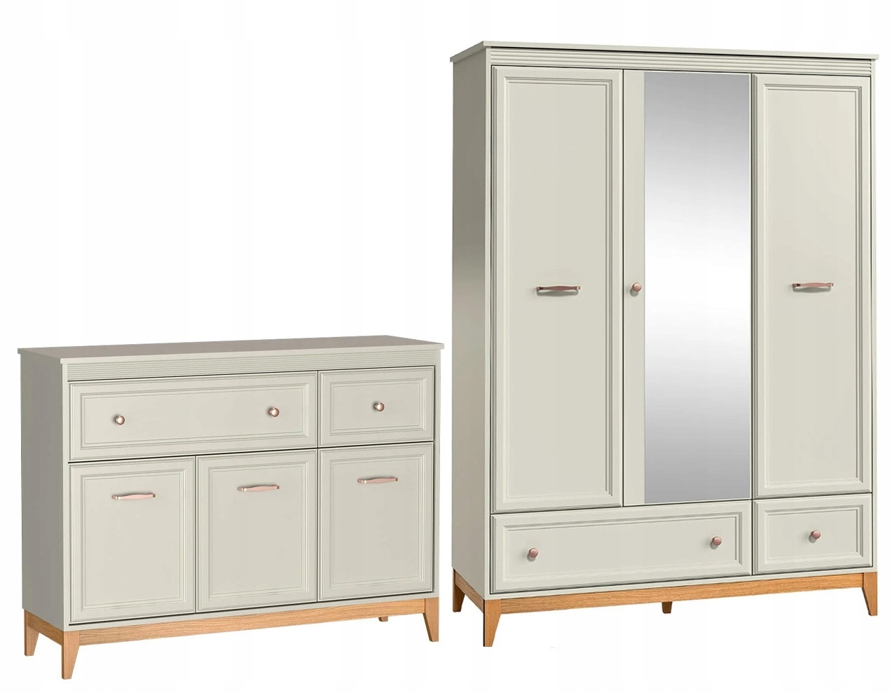 Zestaw szafa 135cm z lustrem + komoda 135cm duża kaszmir do pokoju sypialni