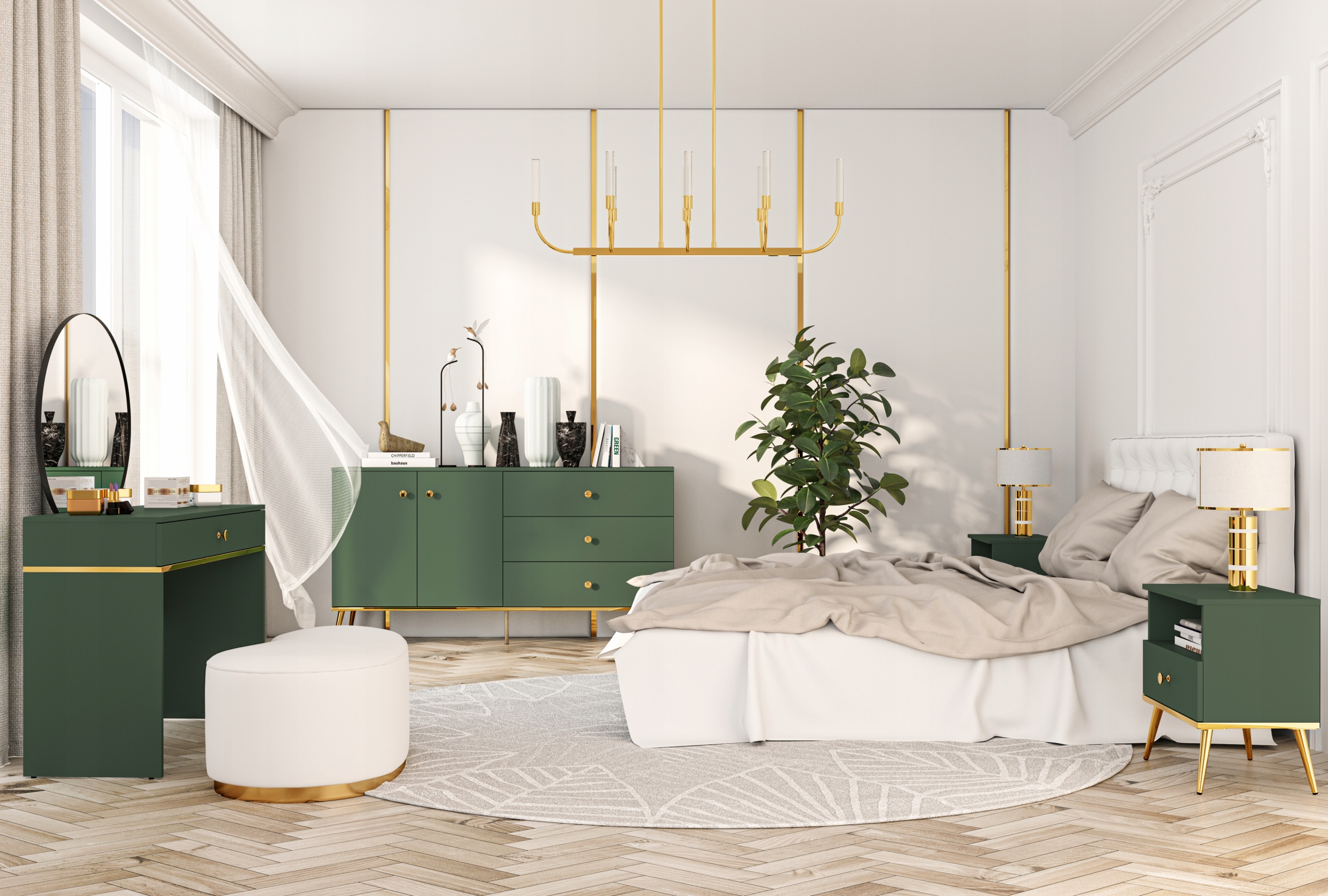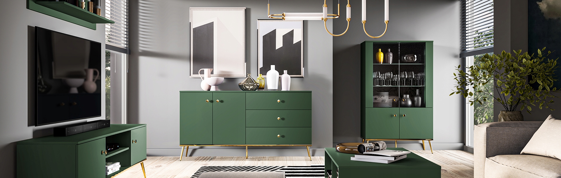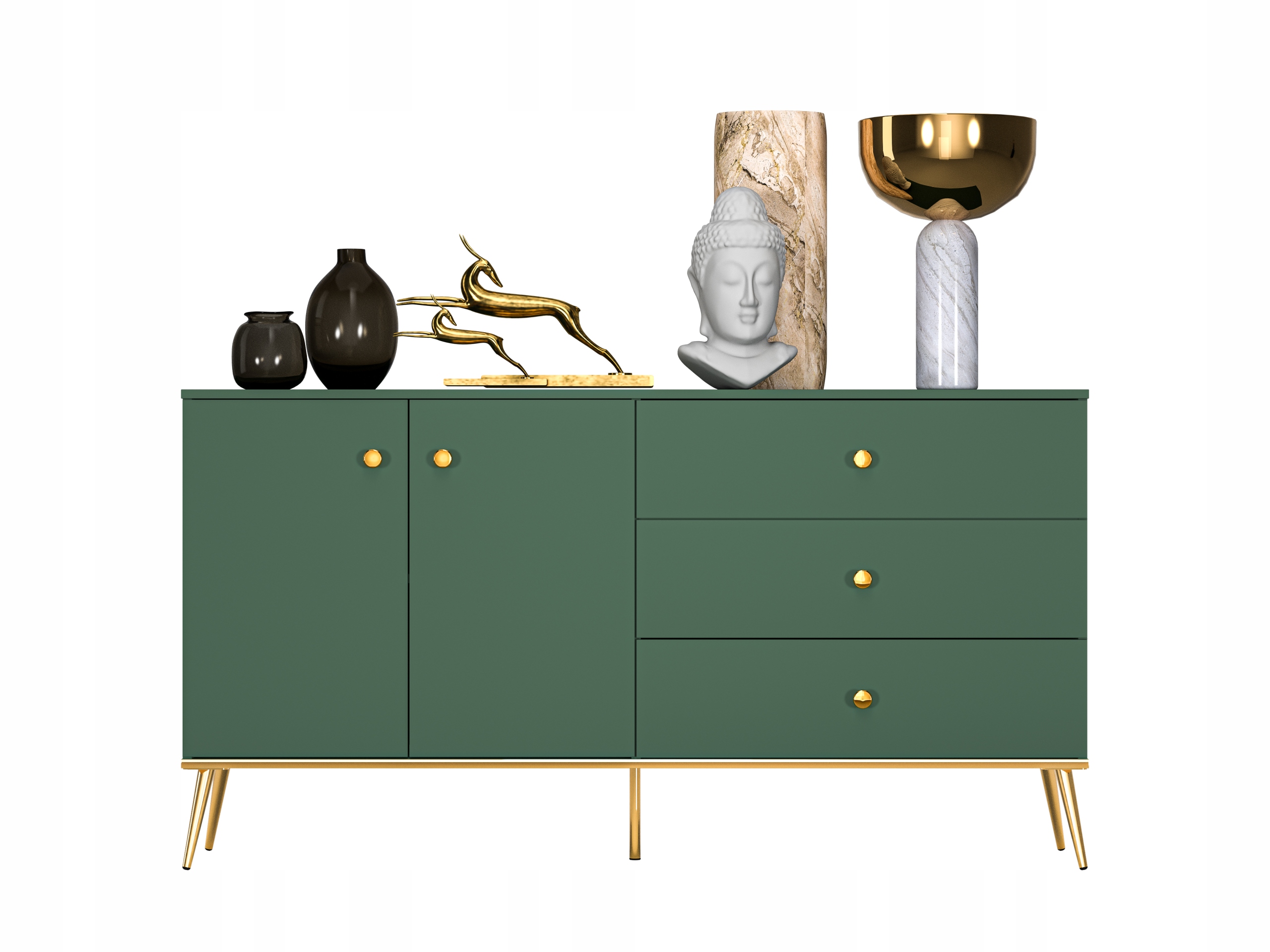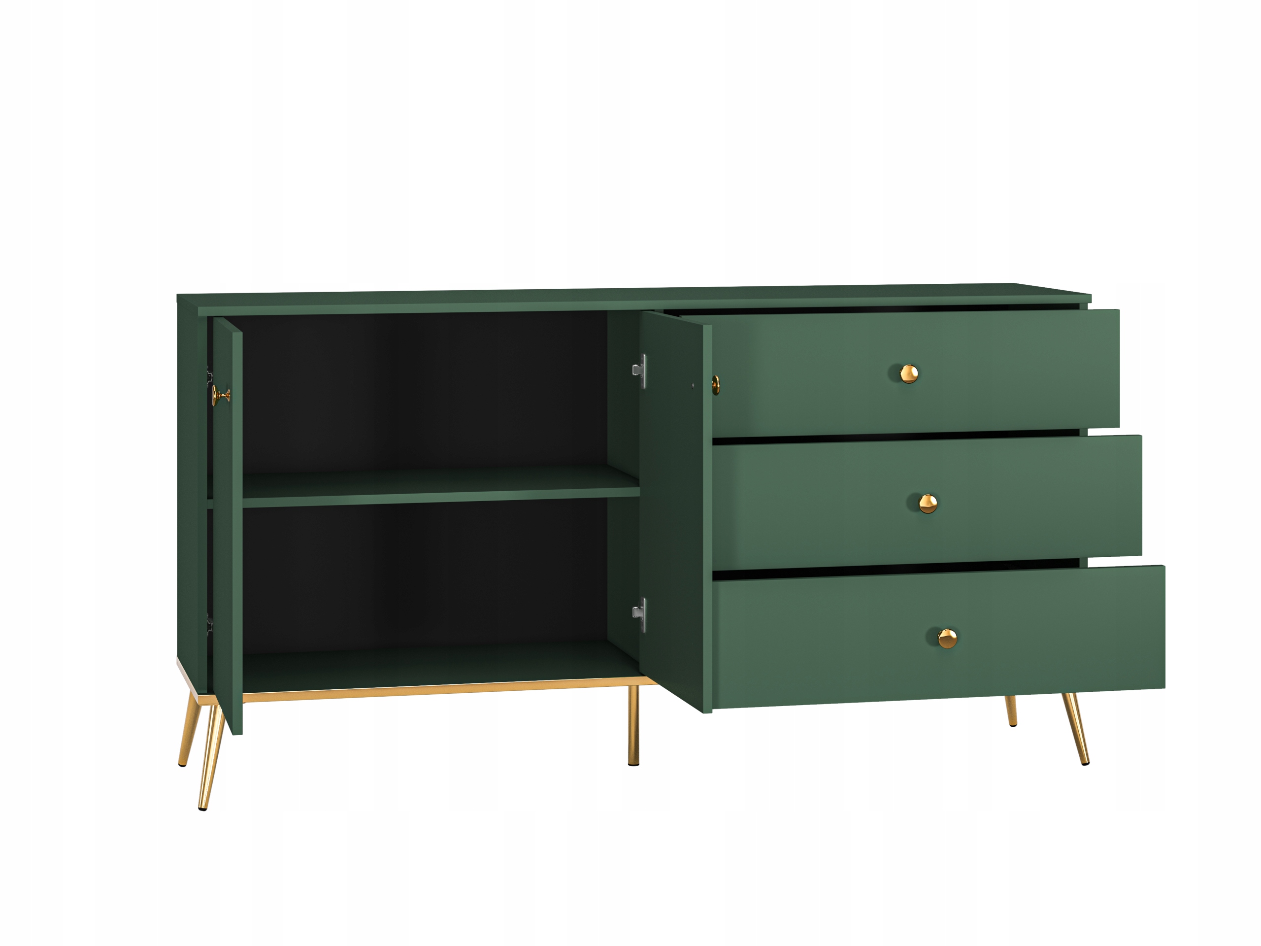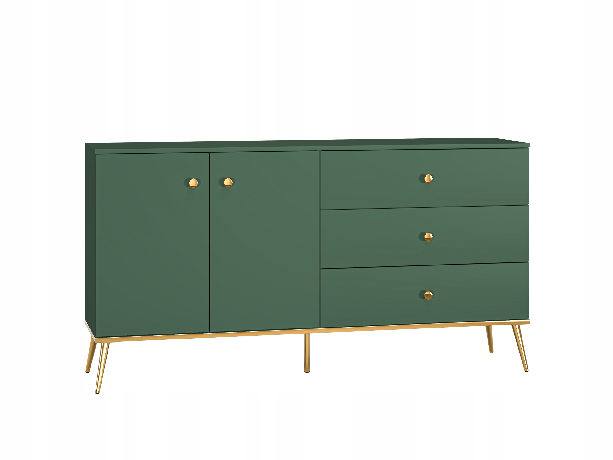 Zielona Komoda glamour złote nóżki butelkowa zieleń FOREST 160cm